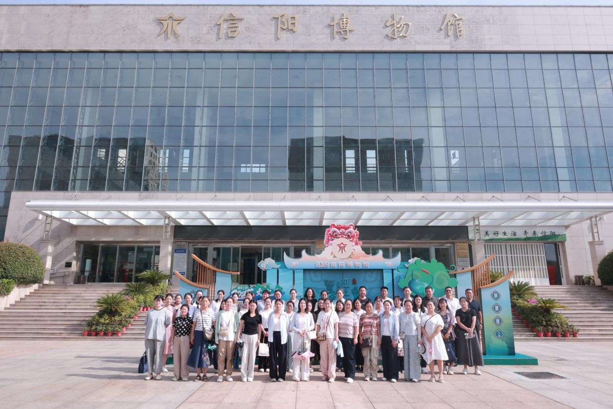 8月24日上午,2025年“义务教育师资薄弱环节改善暨中小学教师素质提升工程”万名优秀中青年教师培育计划项目的学员在班主任萧晟洁的组织带领下,前往信阳市博物馆参观学习。