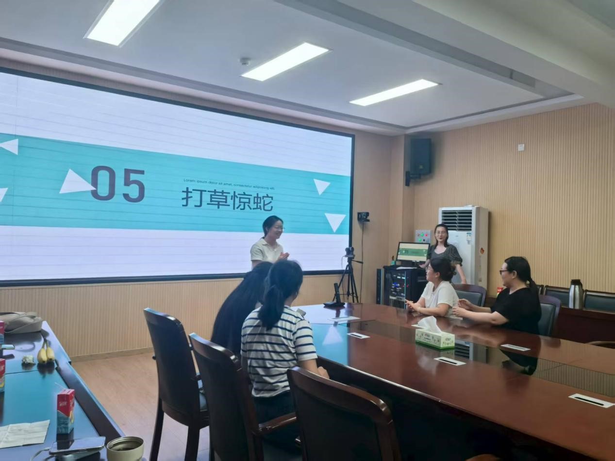 晚会在第五组的节目《三句半》中拉开帷幕,四位老师才华横溢,就本次培训抒发感悟并将其表演出来,一开场便将现场氛围拉至高潮,全场掌声不断。随后,第一组和第二组的学员们开展了“你画我猜”的现场PK,各组派出一名老师猜词,其余老师则用丰富的肢体动作和形象的语言表达进行引导,比赛十分激烈,比分咬合紧张,最后二组老师以一分落败,为大家表演了“六小天鹅”、“千手观音”等舞蹈动作。小游戏妙趣横生,一幕幕生动的场景,使现场笑声不断。何宇昕老师的《荒诞学家》更是点燃全场,歌曲节奏明快,将何老师的热情开朗尽数展现。最后,姜艳霞老师带着大家猜起了河南的地名,老师们也就本地方言展开讨论,欢声笑语不停。