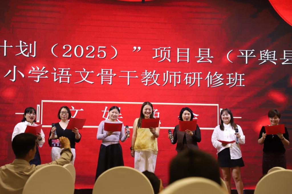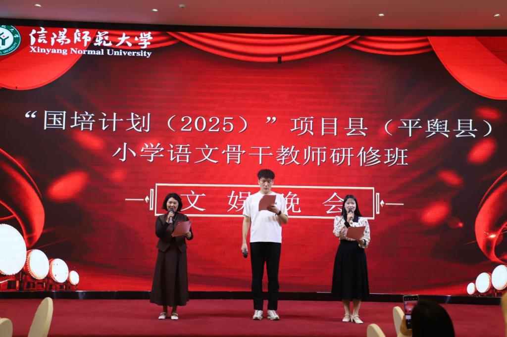 金秋送爽,丹桂飘香。9月20日晚,“国培计划(2025)”平舆县小学语文骨干教师研修班文娱晚会在温馨热烈的氛围中隆重举行。晚会由谢家玉、刘勤、范津铭三位老师联袂主持,所有节目均由研修班学员自编自演,内容丰富多元、形式新颖多样,充分展现了平舆县小学语文教师队伍多才多艺的风采与积极向上的精神风貌。