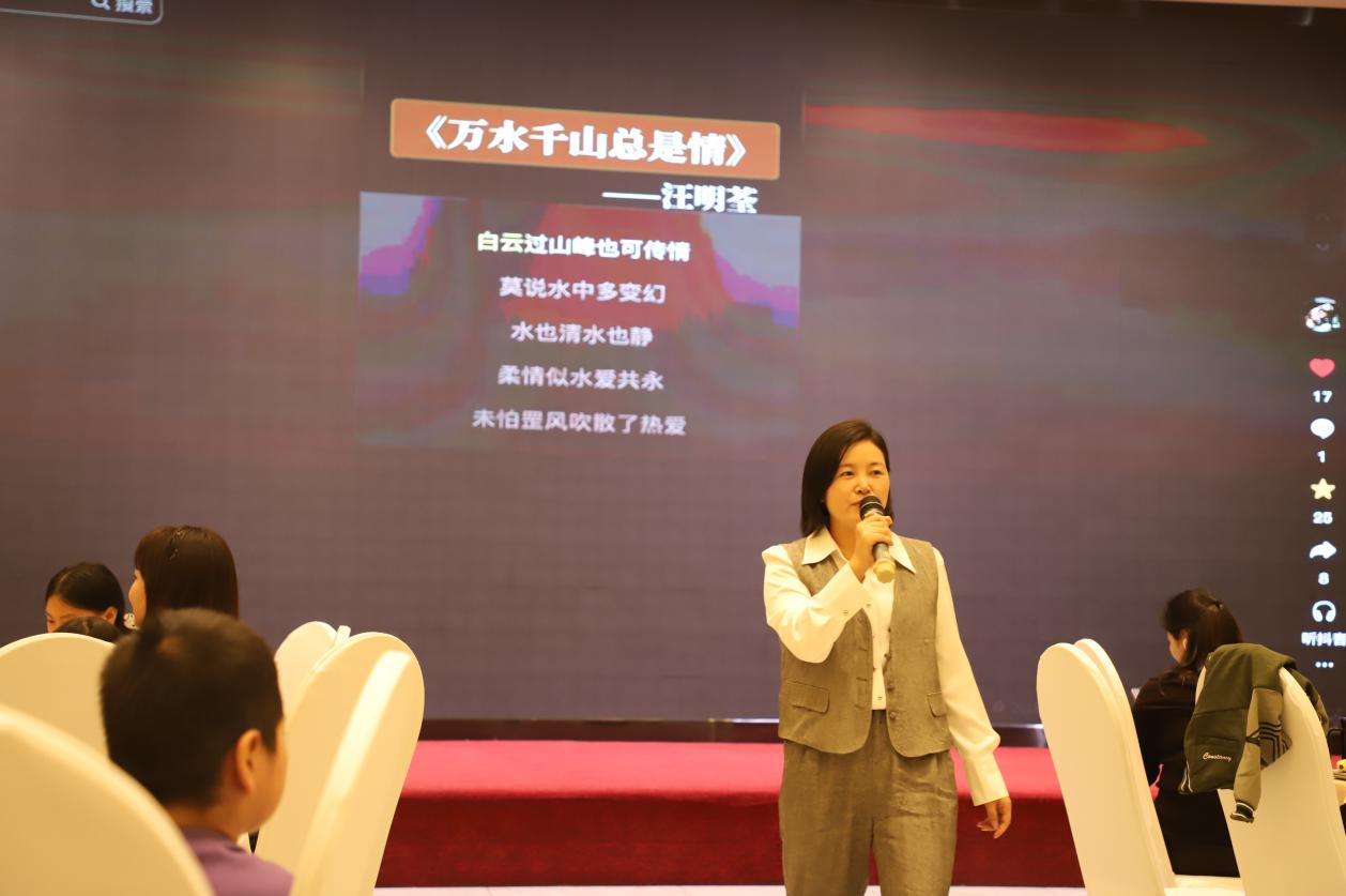 晚会伊始,朱慧敏老师以一曲《万水千山总是情》深情开唱,悠扬婉转的旋律瞬间点燃现场气氛,台下掌声与欢呼声此起彼伏。紧接着,张辉老师带来《声声慢》,低回婉转的歌声勾勒出细腻情愫;高登科老师演唱的《刀剑如梦》则豪情满怀,尽显洒脱气概;冯静静老师的《搀扶》饱含温情,传递出人间暖意。三首风格迥异的歌曲接连登场,让观众沉醉其中,掌声不断。