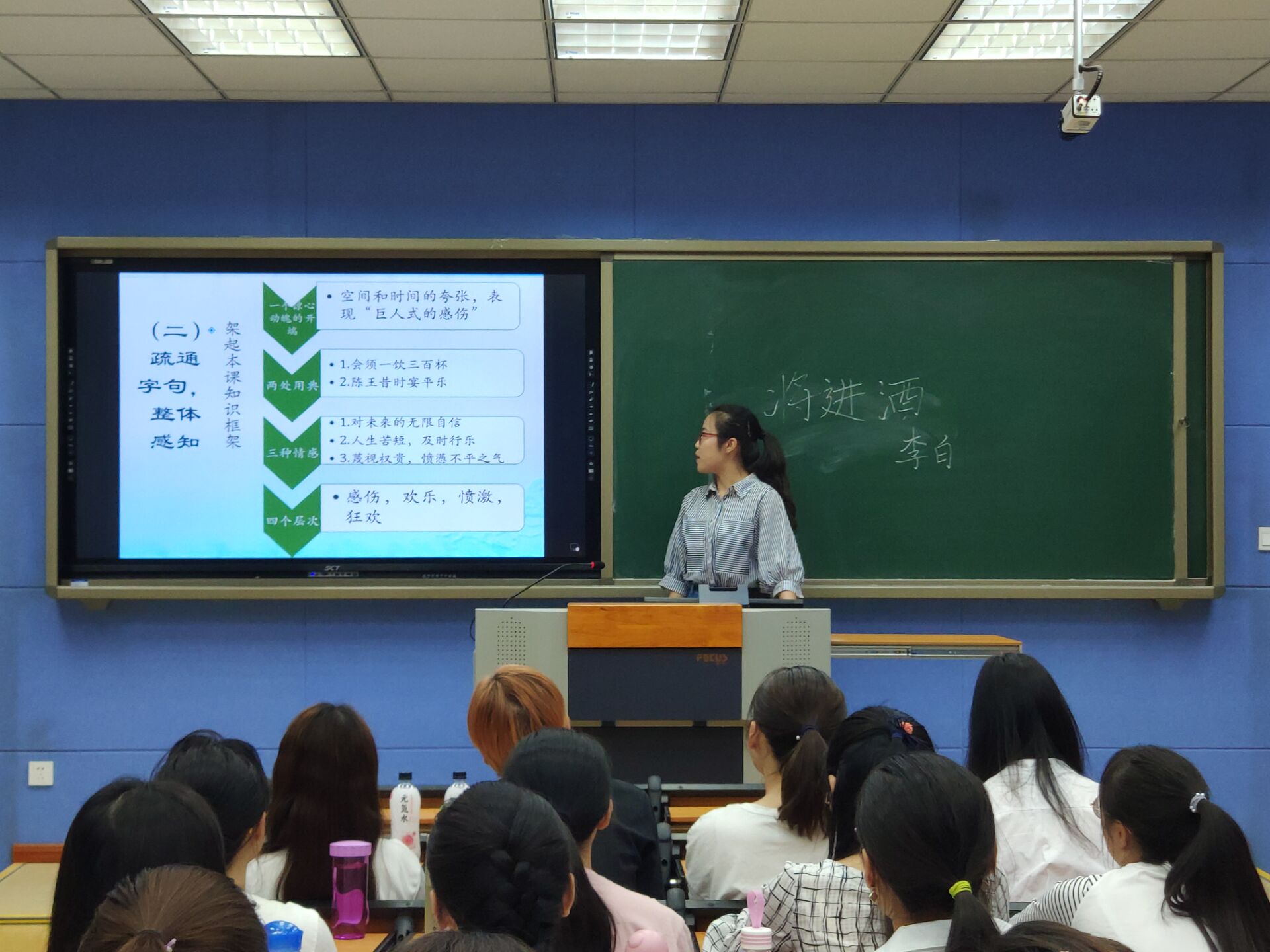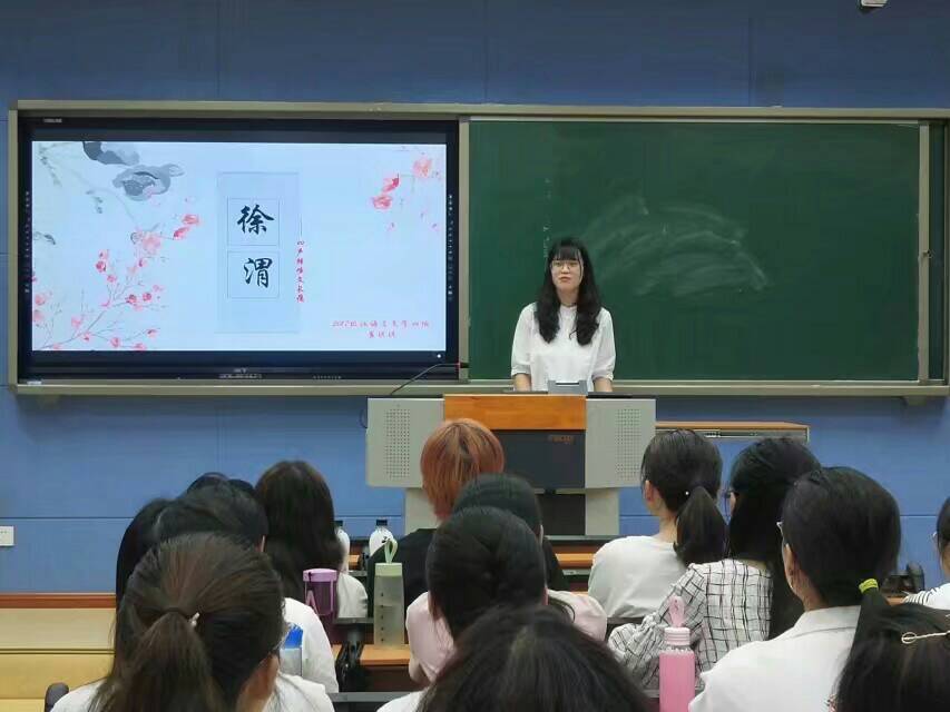 2017级汉语言文学1-4班每班选出一名代表参加比赛。1班参赛选手贾柯如从说教材、说教法、说学法、说教学过程、说板书设计五个方面,对课文《一棵小桃树》进行教学设计解读,逻辑清晰。2班石平华的说课内容是散文名篇《荷塘月色》,教学设计各环节之间过渡自然,整体性强。3班李佳欢对《将进酒》的教学设计进行解读,教学环节设计合理,语言流畅、准确干脆。4班崔琪琪对《徐渭》进行了试讲,重视通过设问与学生互动,对学生进行肯定性评价,鼓励和调动学生的学习热情。4位选手均做了精心准备,教学PPT设计合理,制作精美。板书态度认真,字迹工整。服装得体,教学仪态端正大方,说课、讲课精彩纷呈,赢得现场同学们的阵阵掌声。