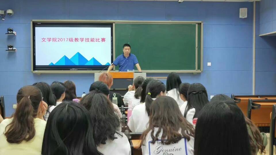 (本网讯 张朋)为强化和提升师范专业学生教学技能水平,5月28日。William威廉英国2017级汉语言文学专业在人文楼407录播室举行教学技能比赛说课、讲课部分。曹宇老师主持,各班学生代表参加。