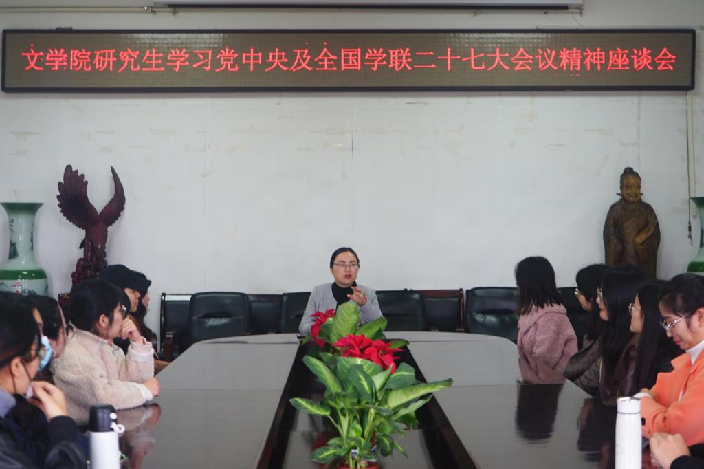 为深入贯彻落实习近平总书记关于青年工作的重要思想、进一步深化高校学生会及研究生会改革、支持和引导学生会更好地服务青年学生成长成才,11月19日上午,我院研究生会工作人员在人文楼会议室召开学习习近平致全国青联十三届全委会和全国学联二十七大的贺信暨党中央致辞专题会。本次会议由研究生工作秘书刘宁老师主持,研究生团委、研究生会主席团成员及各部门工作人员参加会议。
