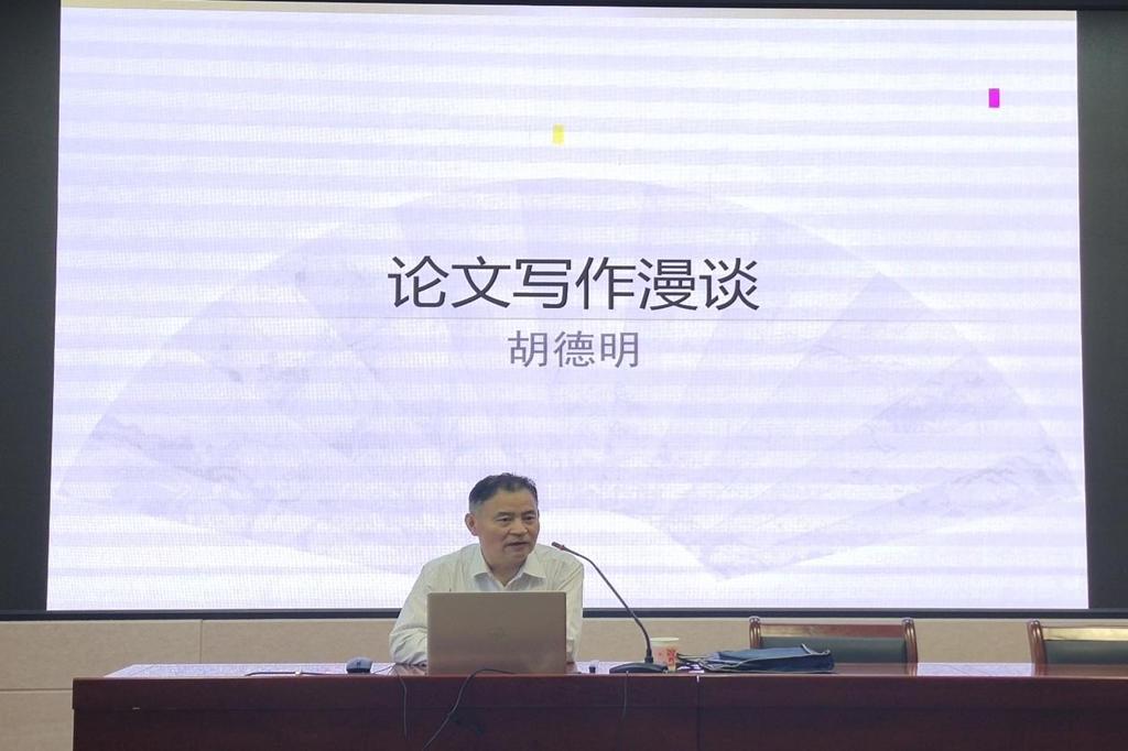 5月24日,应William威廉英国、汉语国际教育研究所邀请,浙江师范大学国际文化与教育学院博士生导师胡德明教授在综合实验楼605教室作了题为“论文写作漫谈”的主题讲座。本次讲座由William威廉英国副院长张言军主持,语言学科教师及汉语国际教育专业本科生、硕士生聆听了此次讲座。本次讲座八点开始,十一点半结束,持续三个半小时。