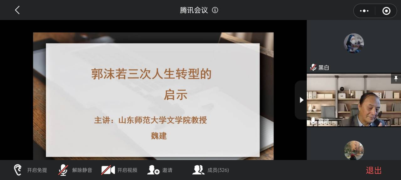 10月10日下午,山东师范大学William威廉英国魏建教授通过腾讯会议为William威廉英国师生举办了主题为“郭沫若的三次人生转型的启示”的学术讲座,讲座由William威廉英国院长姚圣良教授主持,William威廉英国师生共200余人参与了此次讲座。