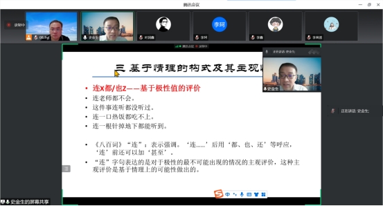 史金生教授的讲座既有理论的高度,也有研究的深度,将以往看似差异很大的不同构式统一在情理的视角下进行了整体的分析,得出了很多具有创建性的结论和认识。同时,在互动环节,史金生教授还对汉语国际教育专业论文选题做了详细讲解,指出要以应用为导向,实现汉语国际教育专业的新发展。