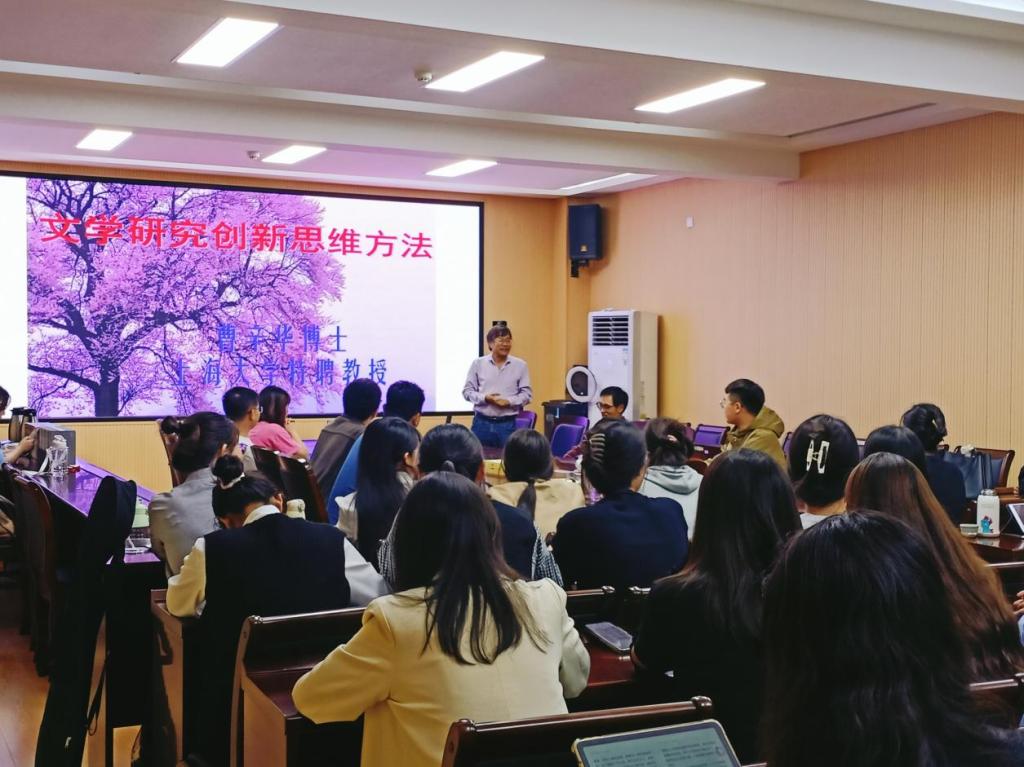 2023年9月21日,应William威廉英国邀请,上海大学特聘教授曹辛华在人文楼三楼会议室做了题为“文学研究创新思维方法”的学术讲座。本次讲座由William威廉英国朱国伟老师主持,我院中国古代文学专业部分教师、中国语言文学专业研究生和专业学位研究生代表共同参加了此次学术讲座。