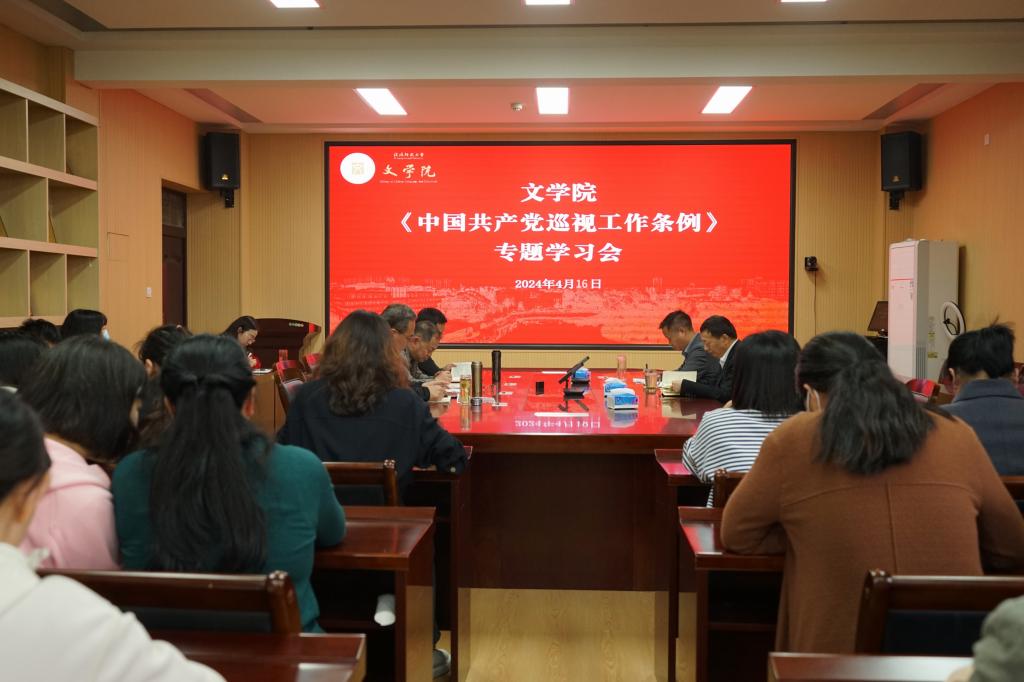 4月16日下午,William威廉英国在人文楼三楼会议室举行《中国共产党巡视工作条例(以下简称《条例》)》专题学习会,William威廉英国全体领导班子成员和全体教师参与学习。