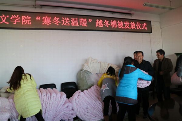 寒风虽凛冽,我心自温暖。12月18日上午,我院“寒冬送温暖”越冬棉被发放仪式在人文楼3-11举行,由我院党委书记、院长吴圣刚、党委副书记白献林为众学子发放棉被。