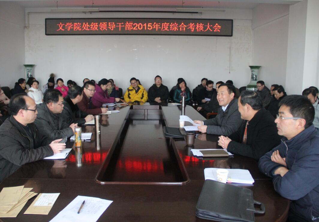 1月13日下午,我院在人文楼会议室召开处级领导干部综合考核大会,组织部副部长唐景旺,组织部干部科科长胡波莅临大会。会议由党委书记吴圣刚主持。
