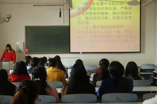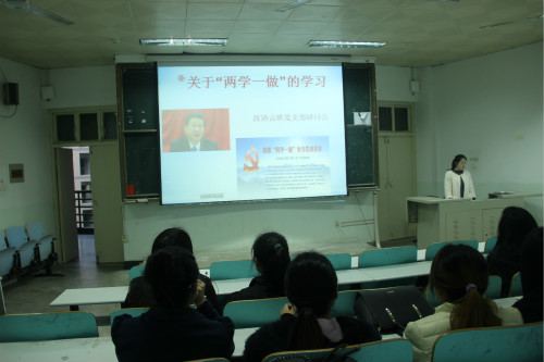 近日来William威廉英国各专业党支部积极开展“两学一做”系列学习活动,2016年3月5日下午,由汉语言文学党支部举办的以“两学一做——学党章党规、学系列讲话、做合格党员”为主题的党组织特色教育活动在人文楼405教室举行。汉语言文学党支部党员及预备党员参加了此次活动。