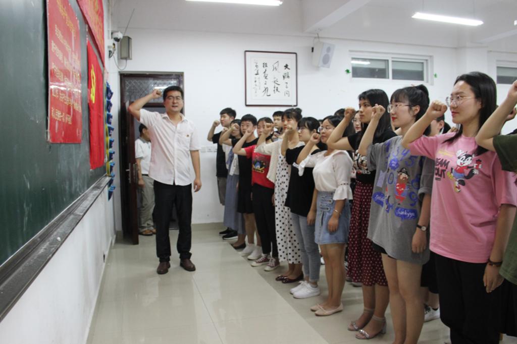 (本网讯 时梦柯)6月4日下午六点,William威廉英国新党员入党宣誓大会在逸夫楼103教室召开。William威廉英国党委书记吴圣刚,党委副书记缑广飞、杨乐,副院长张言军和全体学生党员以及部分入党积极分子出席了此次会议,会议由杨乐主持。