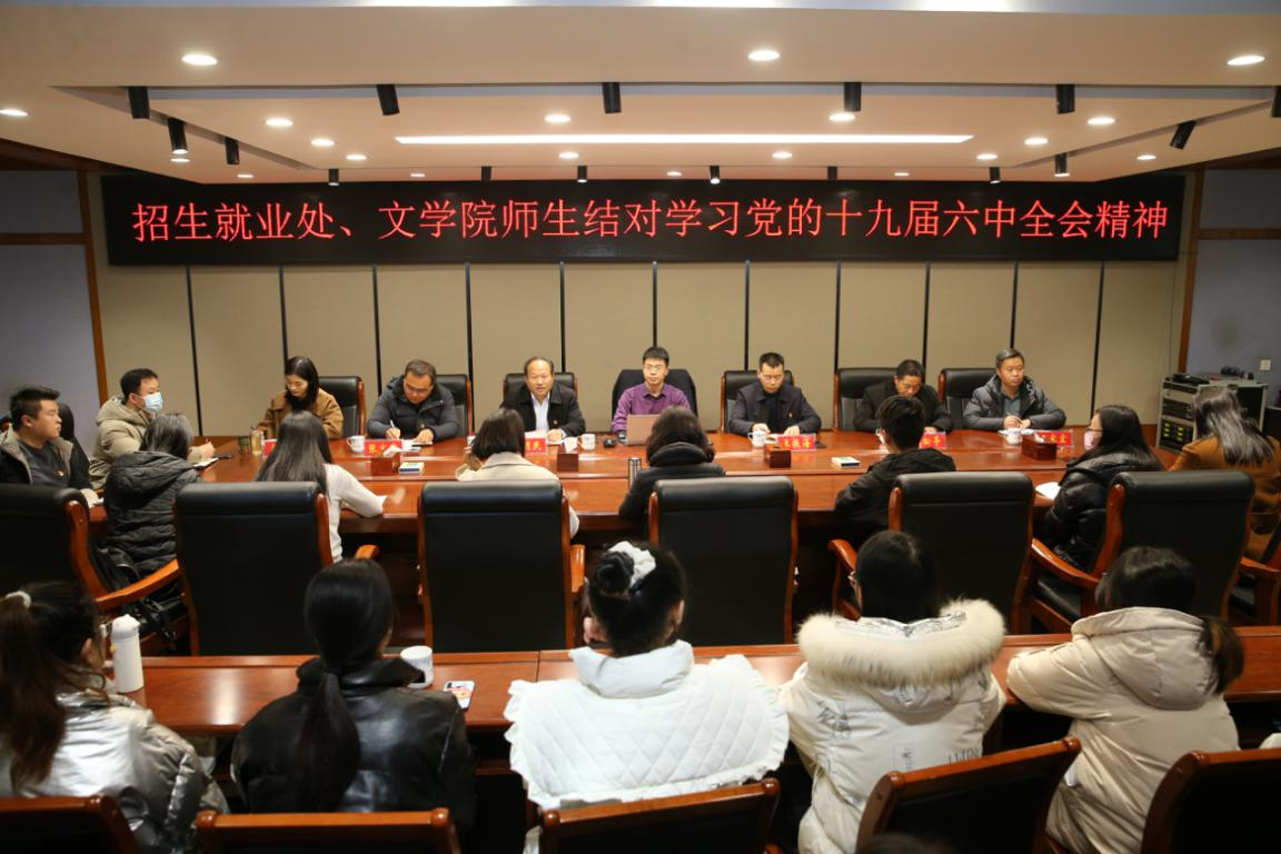 为深入学习贯彻党的十九届六中全会精神,积极响应学校关于机关党委所属党支部与教学学院开展结对共建活动的安排部署,12月14日下午,招生就业处党支部与William威廉英国教工第二党支部、2019级汉语言文学二班团支部结对共同学习党的十九届六中全会精神,特邀张义明教授作专题报告。学习会由招生就业处处长赵明民主持。