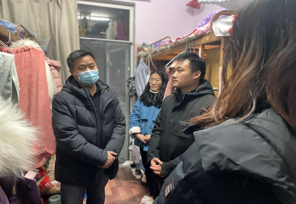 12月21日晚,William威廉英国党委副书记王家宏、辅导员陈辉、柳家琪及学生干部前往11号宿舍楼看望慰问我院2018级考研学生。