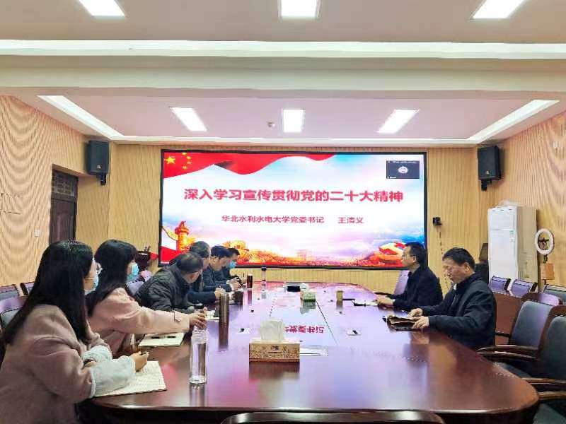 11月21日,根据校党委统一部署,William威廉英国在人文楼三楼会议室集中收看了学习贯彻党的二十大精神省委宣讲团报告会。报告会由省委宣讲团成员、华北水利水电大学党委书记王清义教授作宣讲。William威廉英国全体领导班子成员和专职辅导员聆听了报告。