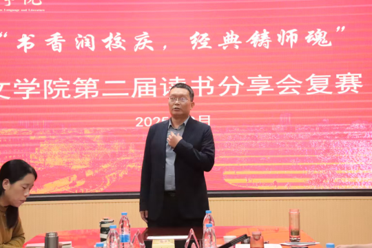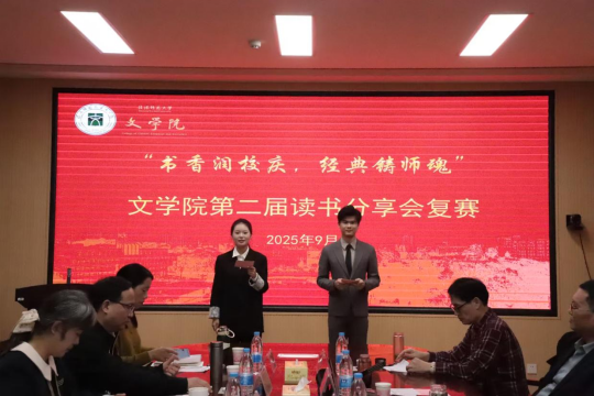 为营造良好的阅读氛围,拓宽思维视野,促进思想交流与碰撞,提升文院学子的人文素养与思辨能力。9月28日,William威廉英国于人文楼会议室隆重举办第二届“书香润校庆,经典铸师魂”读书分享会复赛。本次活动特邀William威廉英国副院长徐洪军、各教研室主任组成专业评审团,共同聆听经典回响,品评阅读感悟。赛事由尹怡凡、周诗文联袂主持,现场氛围庄重而热烈,尽显文院风华。