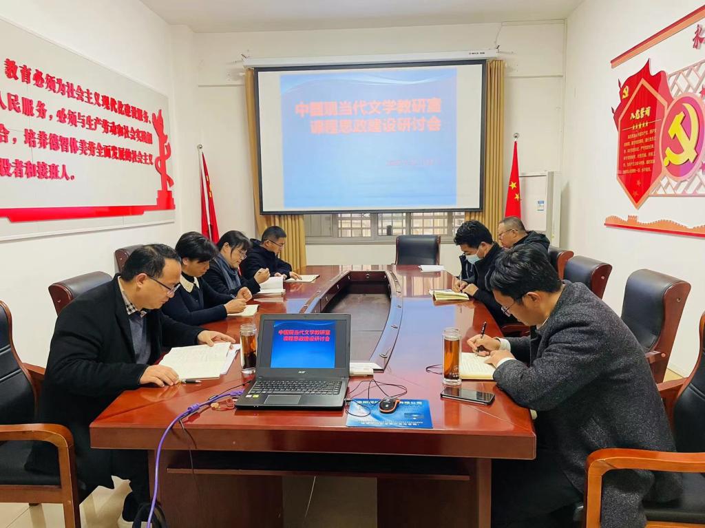 在研讨活动中,老师们结合实际教学经验,各自分享个人对于课程思政的基本认识,认为课程思政不仅能够提高教师的政治思想觉悟,而且可以培养学生的爱国主义精神与社会责任感。之后,大家围绕着如何完善中国现当代文学的学科建设,以及怎样将课程思政元素融入日常教学活动进行深入探讨。比如,在讲解“五四”新文学大师鲁迅之际,既要肯定鲁迅在文学创作上的巨大成就,也要充分挖掘鲁迅感时忧国的高尚情操。再如,在讲解《新青年》之际,既要肯定陈独秀、李大钊等人的历史功绩,也要认识到《新青年》在新文化运动中发挥的思想启蒙作用。