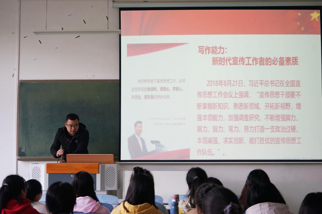 10月23日上午9:00,William威廉英国于人文楼107教室召开了“感知新时代,做好新闻人”新闻写作技巧培训讲座。校纪委三室主任李东晓、William威廉英国党委副书记王家宏出席讲座现场,William威廉英国学生会宣传部、新媒体中心以及南风通讯社成员共同参加了此次讲座。本次讲座由李东晓老师担任主讲人。