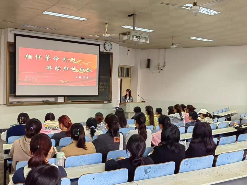 本次团课活动共分为“清明节概述”、“缅怀革命先烈”、“赓续红色血脉”三个方面。首先,各班团支书为大家讲解了清明节的有关知识,并由此引入主题。紧接着各班通过讲述一个个鲜明的英雄人物事迹,使同学们更充分的感受到那段峥嵘岁月的艰苦卓越,从英烈精神中汲取奋进动力。