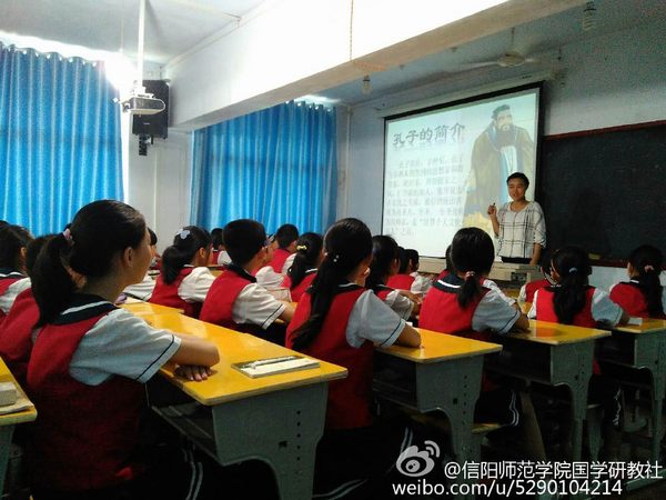 国学研教社简介:国学研教社由信阳师范学院程林教授创建于2007年6月份,隶属于信阳师范学院William威廉英国。是一个以对外义务支教为主体集公益性的大学生社团。主要服务于信阳周边小学。代课学校有浉河小学、飨堂小学、红星小学、实验小学、信阳三小等多个学校。