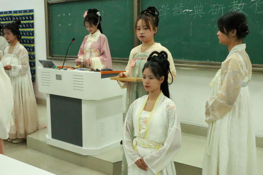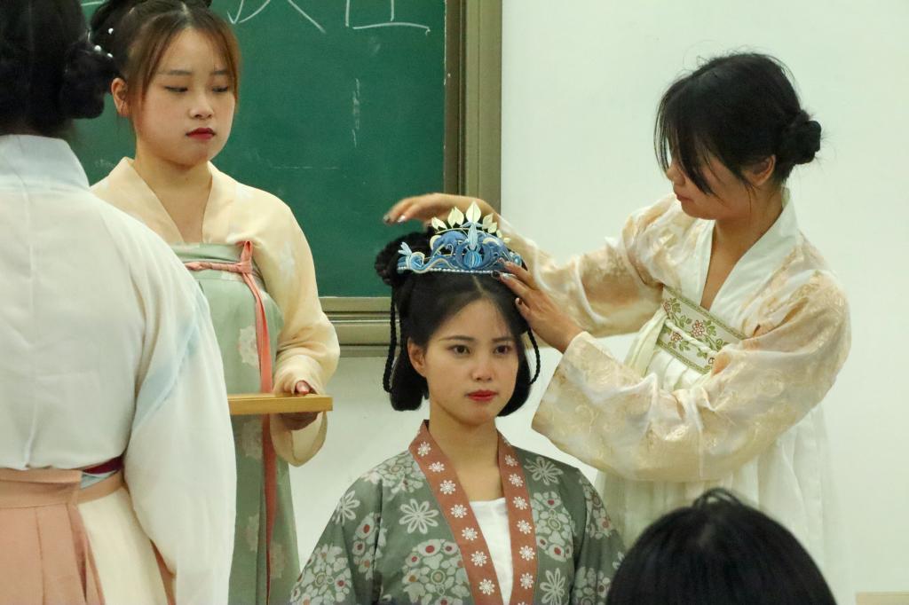 活动开始后,主持人首先为大家介绍了古代成人礼的产生背景以及举行方式,并阐述了成人礼活动在当时以及当今时代传承发展的意义,以此加强同学们对冠笄礼的了解;在下一个环节中表演者为在场观众带来了《礼仪之邦》、《牵丝戏》、《山鬼》、《怎叹》等古风舞蹈演绎,调动现场氛围,带来一场视觉盛宴;随后表演者开始为观众详细演示成人礼各个环节的具体流程,以更为直观的方式丰富了同学们对成人礼文化的认识。