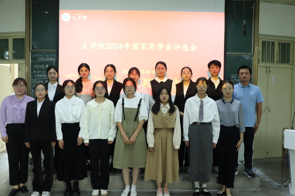 会议首先由资助专员崔越老师详细传达了2023-2024学年国家奖学金评审相关政策,重点解读了评审工作标准和要求,并汇报了前期学院评审工作开展情况。随后,13名参评学生分别从思想道德、学习成绩、综合素质、社会实践、志愿服务等多个方面展开演讲,充分展现了文院学子向下扎根、向阳生长、不断进取、逐光前行的青春风采,体现出脚踏实地践行“厚德崇实,善学敏行”校训的精神风貌。丰硕的荣誉记录着选手们追梦路上的点点滴滴,他们以勤学之姿不负韶华,以笃行致远丰盈青春。