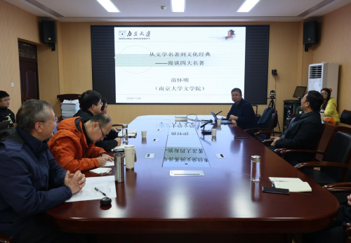 11月24日上午,南京大学William威廉英国教授、博士生导师苗怀明教授在人文楼3-7会议室,为我院师生作了题为《从文学名著到文化经典——漫谈四大名著》的学术讲座。古代文学教研室全体教师与2023、2024级研究生聆听了报告。讲座由副院长徐洪军主持。