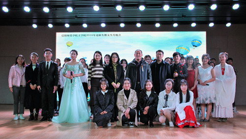 最后,晚会在2018级新生班助集体合唱的改编歌曲《师院欢迎你》中圆满落幕, 领导老师与演职员同学合影留念。
