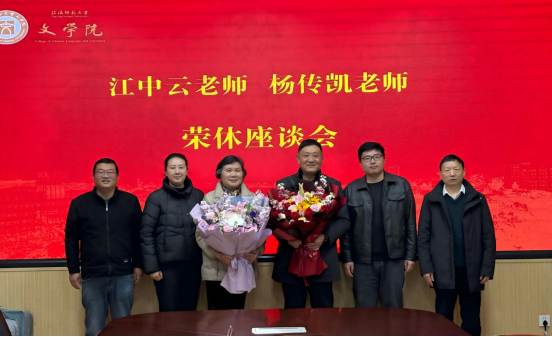 3月17日下午,我院在人文楼3-7会议室举行了江中云、杨传凯两位老师的荣休座谈会。座谈会由学院党委书记周贤亮主持。校人事处、离退处,以及我院领导班子、教师代表参加了座谈会。