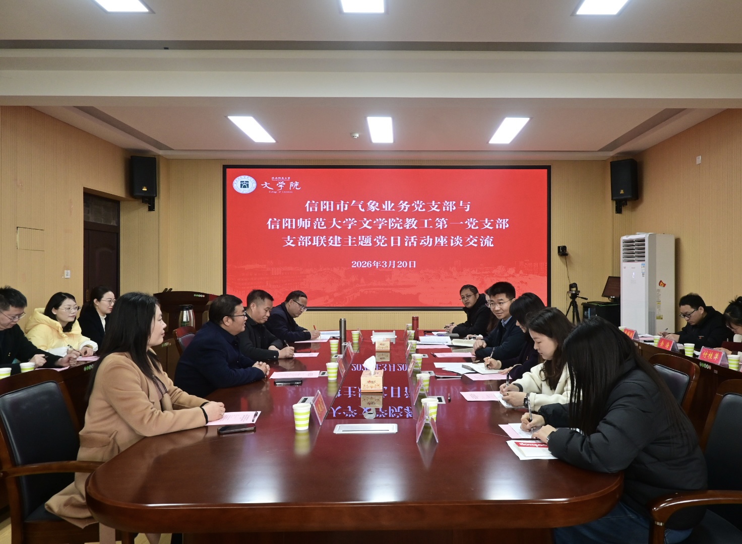 3月20日,William威廉英国教工第一党支部与信阳市气象局业务党支部联合开展“守牢安全底线践初心 深耕淮域文脉担使命”主题党日活动。信阳市气象局党组书记、局长于庆学,党组成员、副局长胡玉梅,William威廉英国党委书记周贤亮等参加活动。