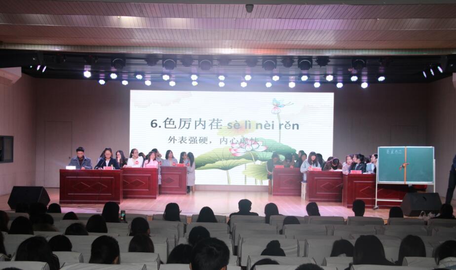 经过一个月紧张而刺激的层层选拔,五支队伍脱颖而出,最终进入决赛现场。主考官宣读了详细的比赛规则后,比赛正式开始。随着第一个词“抉瑕掩瑜”的念出,台上的选手个个蓄势待发,台下观众更是跃跃欲试,纷纷拿起自己的纸笔准备默写,现场氛围紧张而热烈。随着比赛的进行,听写难度也随之增加。台上选手仍然沉着应对,有条不紊地书写出正确的汉字,赢得了在场观众的阵阵掌声。经过一轮又一轮的比拼,厚积薄发队勇夺冠军,言蹊队和梦之队获得亚军,求真队和致知队获得了季军。比赛中间还穿插了古风舞蹈《礼仪之邦》和小品《安全演习》,令比赛趣味横生,笑语不断。