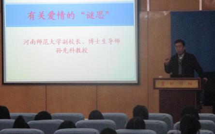 报告中,孙先科教授针对“新写实主义文学”的两个代表作家池莉与芳芳的不同爱情观,阐释她们对爱情的思考与回答。他先从池莉的成长经历讲起,分析其作品中蕴含的极端思想的内在根源。又以池莉代表作《烦恼人生》为例,从内容、结构、人物关系三个方面深刻剖析了池莉“不相信爱情的”人生观。接着,他从方方的《桃花灿烂》入手,重点分析其在情节结构上对传统爱情小说模式的突破、创新以及小说令人意外的结局,传达出方方相信爱情、渴望爱情的观念。他深入浅出的剖析,深刻独到的见解,形象生动的讲述,让在场同学深深领会了文学之美。