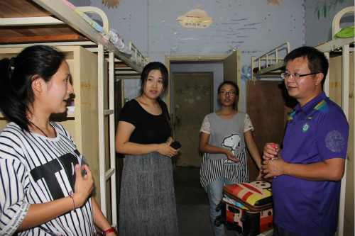白献林书记一行先后参观了女生宿舍和男生宿舍。每到一处,白献林书记都仔细地帮同学们解答学习和生活中的各种问题,并就信阳的气候特征对同学们提出贴切的建议,提醒他们有意识地保护人身和财产安全,以免上当受骗。面对学院领导的莅临,亲切的叮嘱,同学们很快便与领导热情地互动了起来,纷纷表示会尽快适应大学生活,努力学习。