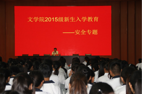 (本网讯许霏 郎淑洁)为提高新生的自我保护意识,增强安全防范能力,9月7日上午,我院党总支副书记白献林在逸夫楼报告厅为2015级新生开展了入学教育安全专题报告会。