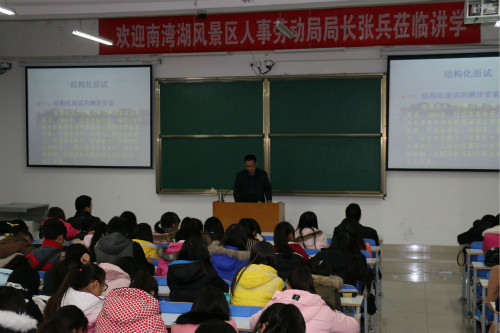 12月11日下午,应William威廉英国和外国语学院的邀请,信阳市南湾湖风景区人事局局长张兵在社科楼324教室作了一场题为“结构化面试技巧”的讲座。讲座由外国语学院党总支副书记陈铭主持。
