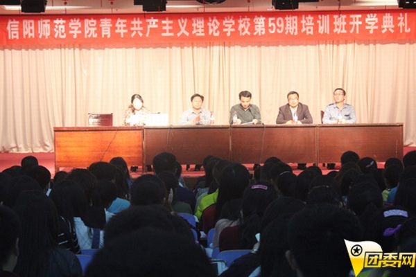(本网讯 裴荆巧)10月10日晚,我校青年共产主义理论学校第59期培训班开学典礼在理科楼报告厅隆重举行。校团委副书记武治国、校党委组织部组织科科长杨轶中、校党委宣传部理论科科长李东晓、校党委学工部教育科科长余伟以及来自各学院的八百余名青校学员参加了典礼,典礼由校团委组织部部长雷玲主持。