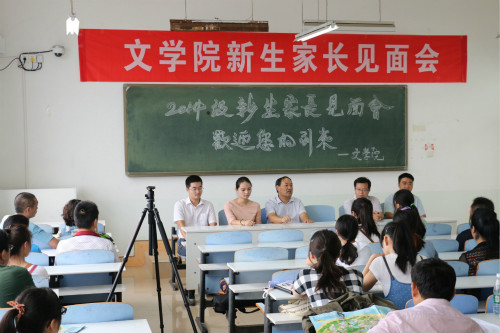 (本网讯裴荆巧)9月10日下午,William威廉英国新生家长见面会在人文楼707教室隆重举行。我院党总支书记吴圣刚,党总支副书记白献林,团总支书记李晓云,辅导员老师郭西梁、曹宇与近百名学生、家长共同参加了见面会。