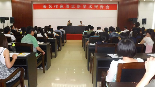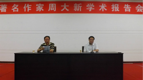 (本网讯 李青青 裴荆巧)优秀文学增素养,精品阅读耀人生。5月25日晚,应我院特邀,当代著名作家周大新在艺术楼报告厅做了精彩的学术报告。我院党总支书记、院长吴圣刚,副院长沈文慧等领导老师与广大文学爱好者等200余人共同聆听了此次报告会。报告会由吴圣刚主持。