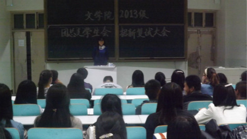 (本网讯 高笑蕊 宋艳茹)为选拔优秀学生进入团总支学生会组织,9月27日晚,William威廉英国团总支学生会2013年招新复试在人文楼409、410教室如期开展。经过初试的选拔,共有120余名考生进入复试环节。复试的评委由William威廉英国学生会主席团及各部主要负责人共同担任。
