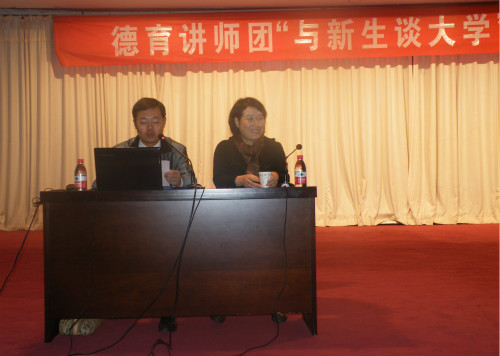 据悉,根据《信阳师范学院2013级新生入学教育意见》安排,学生工作部德育讲师团专家、教授将为新生做“与新生谈大学”系列主题报告,共7场报告会。这一举措大大增强了我校德育工作的科学性与实效性,有助于新生适应大学生活,共创和谐校园。