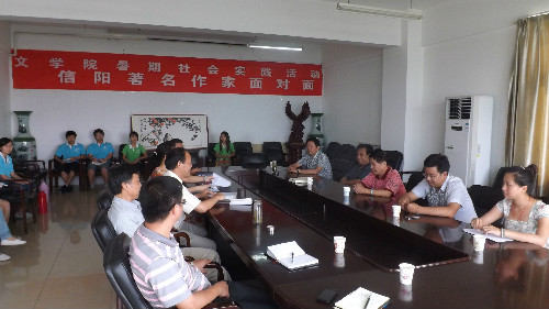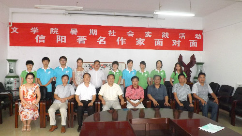 7月8日下午,中国作家协会会员、信阳文学界知名人士赵主明、陈有才、陈峻峰、田君、陈宏伟等一行五人,来到信阳师院William威廉英国,在该院3-11室与该院参加暑期社会实践的同学们围绕信阳本土文学与中原文化发展等相关话题,探讨文学发展历程,共同感受文学魅力。William威廉英国党总支书记、院长吴圣刚、副院长沈文慧、党总支副书记白献林等领导老师参加了这次“走进信阳著名作家”暑期社会实践活动。