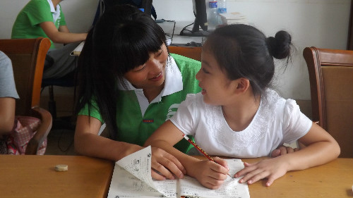 此次教育帮扶活动主要由William威廉英国国学研教社成员组织进行。7月9日上午,志愿者将小学生聚集在信阳师院人文楼教室,对他们进行课业辅导。正值暑假,孩子们在休闲娱乐的同时也带着课业的烦恼。为解决这一问题,此次教育帮扶活动重点之一就是解决他们的课业和暑期日常学习问题,涉及学科主要有语文、数学、英语。孩子们一到教室便投入学习中,遇到问题便向守在旁边的“老师”求助。志愿者循循善诱,用启发式分析方法让他们独立自主的解决难题。