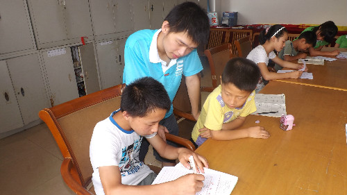 7月7日,信阳师院迎来一批小客人,他们是飨堂小学的小学生。信阳师院William威廉英国国学研教社成员对他们进行课业辅导,重点解决小学生的暑期日常学习问题,涉及学科主要有语文、数学、英语。志愿者循循善诱,用启发式分析方法鼓励他们独立自主地解决难题。