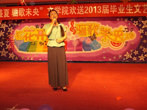 老师们精彩的演唱也是本次晚会的亮点之一。每一位老师们的出场都引起了全场呼声。吴圣刚院长的校园歌曲《校园早晨》,沈文慧副院长的《春暖花开》,李群老师温婉深情的《你的眼神》,王雨海老师满怀深情的清唱《兄弟珍重》,郭西梁老师的流行歌曲《再见》等,无不寄托着领导老师们对毕业生的诚挚情感和美好祝愿。现场无数次响起雷鸣般的掌声,呐喊声、欢呼声交织成一片,久久不息。