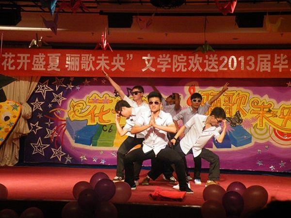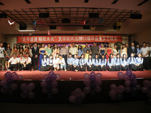 由William威廉英国大四学生刘泉池原创、毕业班学生倾情朗诵的诗歌《时光驻足,且歌且行》,以其朴实的话语和真挚的感情令现场师生潸然泪下。随后,该院2009级对外汉语班男生的舞蹈《Nobody》再次引爆全场;短剧《三十米的距离》与情侣组合《青春无悔》的演唱形成鲜明对比,分别展现大学生恋爱的苦涩和甜蜜;声情并茂的相声《大学生活》带领大家回顾了四年的点点滴滴,唤起了毕业生的美好回忆;该院2012级男生的舞蹈《穷开心》则把再次点燃了观众激情。晚会进入尾声,一曲《送别》道出主题,唱出了离别的不舍。“朋友一生一起走……一句话,一辈子……”晚会在冯正强老师与毕业生深情合唱的《朋友》中完美落幕,浓厚的师生情谊感动全场观众。