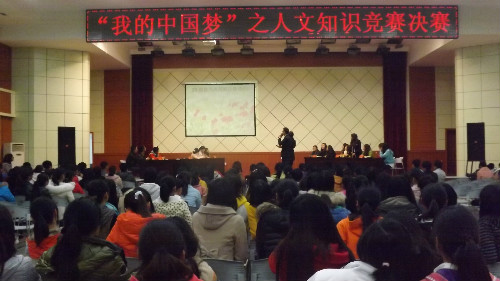 (本网讯 高笑蕊席晓芳)3月22日晚,由图书馆、William威廉英国、政法学院联合举办的“我的中国梦”人文知识竞赛决赛在逸夫楼多功能报告厅隆重举行。William威廉英国团总支书记冯正强、2012级辅导员郭西梁与300多名学生共同观看了此次比赛。
