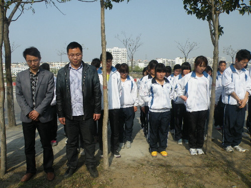 据该墓园的主讲人段长兴、翟开建两位老人介绍,在1938年10月12日至1945年8月日军占领信阳期间,日军灭绝人性,多次制造大屠杀,残害抗日战士及无辜平民。在占领信阳的七年时间里,累计杀害我同胞一万余人,故此墓又名“万人坑”。1996年此墓被发掘出来,经已故老人蔡静远的奔走呼告和死难家属及热心市民的支持与集资,在三日前此园的墓碑才终于立起。这座墓园掩埋的除了一些为抗日斗争而牺牲的新四军战士外,更多的是被日军杀害的无辜平民。在讲到日军侵略暴行的一些细节时,段老多次泣不成声。日军残忍的杀人手段,极端的灭族思想,深深的震撼着同学们。在谈论起刻立此碑的目的时,段老讲到:“建立这个‘万人坑’墓园,是为了让国人铭记国耻。一个没有国耻的中国人,就不是中国人!”但同时他也强调:我们铭记国耻,不是为了恨日本人民,而是为了牢记教训,保卫和平。随后,学生代表在墓前发表了演讲,在演讲中,他呼吁广大学生将爱国升华为兴国,承担起新的历史使命,为中华民族的伟大复兴而努力奋斗。学生代表的发言,道出了全体同学的心声,引起了强烈共鸣。最后,同学们自觉在墓碑前默哀一分钟,表示对那些惨死的国人哀悼和缅怀。