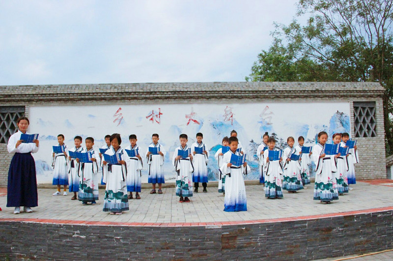 此次活动的主要内容是教读国学经典《三字经》,希望孩子们在学习背诵《三字经》的同时,能够说好普通话,了解了常识、传统国学及历史故事,以及故事内涵中的做人做事道理。下午,志愿者们身着汉服,为孩子们分发汉服服,精心塑造汉文化造型,将《三字经》送到每一位孩子手中。志愿代表用标准的普通话教孩子们诵读,教导孩子们一定要学好普通话并耐心纠正每一位小朋友的发音。之后,志愿代表为孩子们讲解了孔融让梨、孟母三迁等《三字经》中的经典故事,同时告诉孩子们故事背后做人做事的道理,教导孩子们用心去领略传统美德中“仁,义,诚,敬,孝”的核心思想。活动最后,孩子们自信满满地站在乡村大舞台上,在志愿代表的带领下,用标准的普通话用心地诵读《三字经》,获得了村民的阵阵掌声。