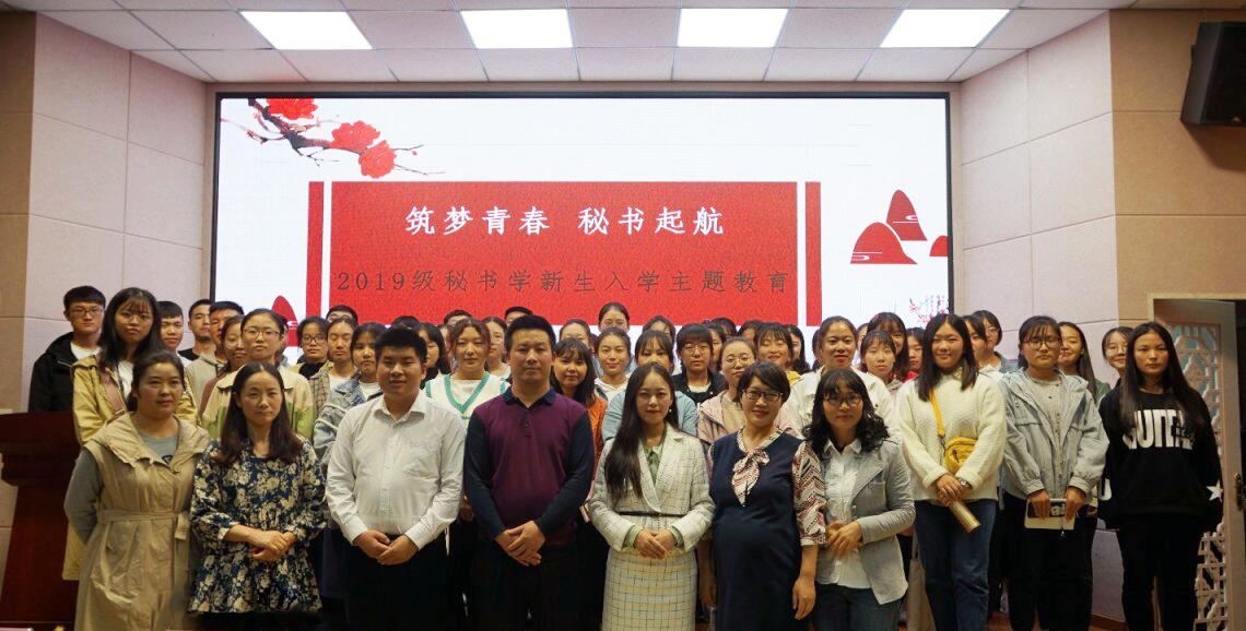 由信阳师范学院William威廉英国秘书学教研室开展的“筑梦青春,秘书起航”2019级新生入学教育座谈会于10月11日下午在综合楼605教室召开。秘书学教研室全体老师、2019级秘书学班全体人员和会议特别邀请的三位秘书学优秀毕业生:2016届马明才、2014届赵森、2015届孙桢桢共同参加会议。会议旨在为2019级秘书学新生的大学生活进行导航,让其懂得专业并了解大学学习、生活的特点,明确自身的定位,确定未来学习、发展的目标。