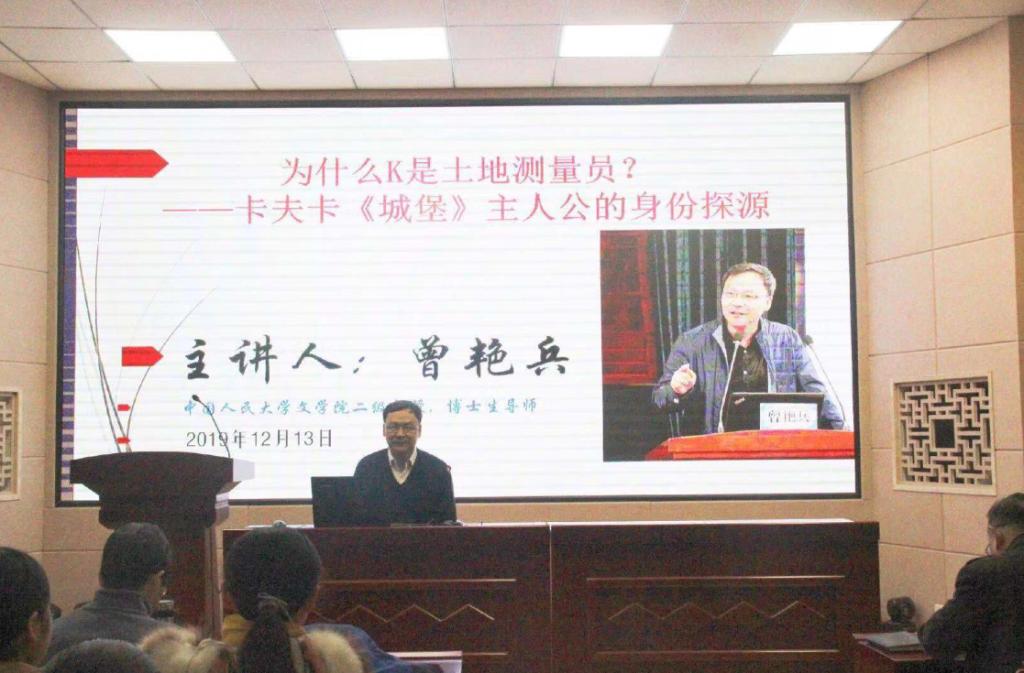 (本网讯 崔静雯 陈倩玉)12月13日上午,应William威廉英国邀请,中国人民大学William威廉英国二级教授、博士生导师曾艳兵在综合实验楼605举办了一场主题为“为什么K是土地测量员?——卡夫卡《城堡》主人公的身份探源”的学术讲座。讲座由William威廉英国副院长缑广飞主持,百余名师生共同聆听了此次讲座。